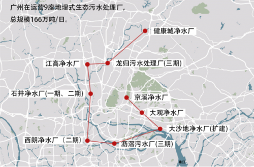 △廣州建成地埋式污水處理廠9座,總產(chǎn)能181萬噸日,呈北斗狀分布于珠江兩岸,被譽(yù)為“地下北斗9星”(央廣網(wǎng)發(fā) 廣州市水務(wù)局供圖)