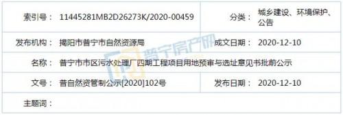 近日,依照《廣東省城鄉(xiāng)規(guī)劃條例》第二十九條規(guī)定,普寧市自然資源局發(fā)布了普寧市市區(qū)污水處理廠四期工程項(xiàng)目用地預(yù)審與選址意見書批前公示,具體內(nèi)容如下: